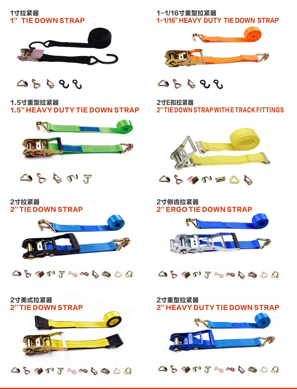 可根据实际捆绑的需要对末端配件进行更换,例如:双排钩、三角环、吊钩、镀锌钩、拖车钩、圆环等。捆绑带的宽度一般在1英寸到10英寸之间,也是我们说的2.5公分到10公分之间,具体的规格型号有:2.5公分捆绑带、3.5公分收紧器、5公分拖车带和7.5公分收紧器、10公分收紧器。产品颜色可定做,末端金属配件可更换。