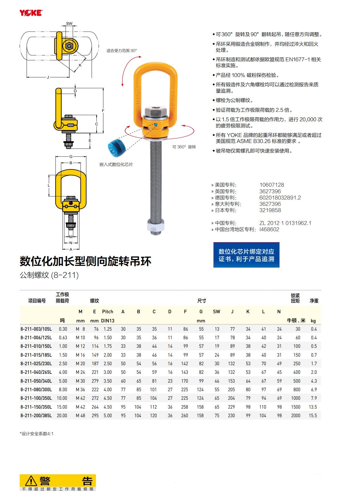 • 所有 YOKE 品牌的起重吊环都能够满足或者超过美国规范 ASME B30.26 标准的要求 。