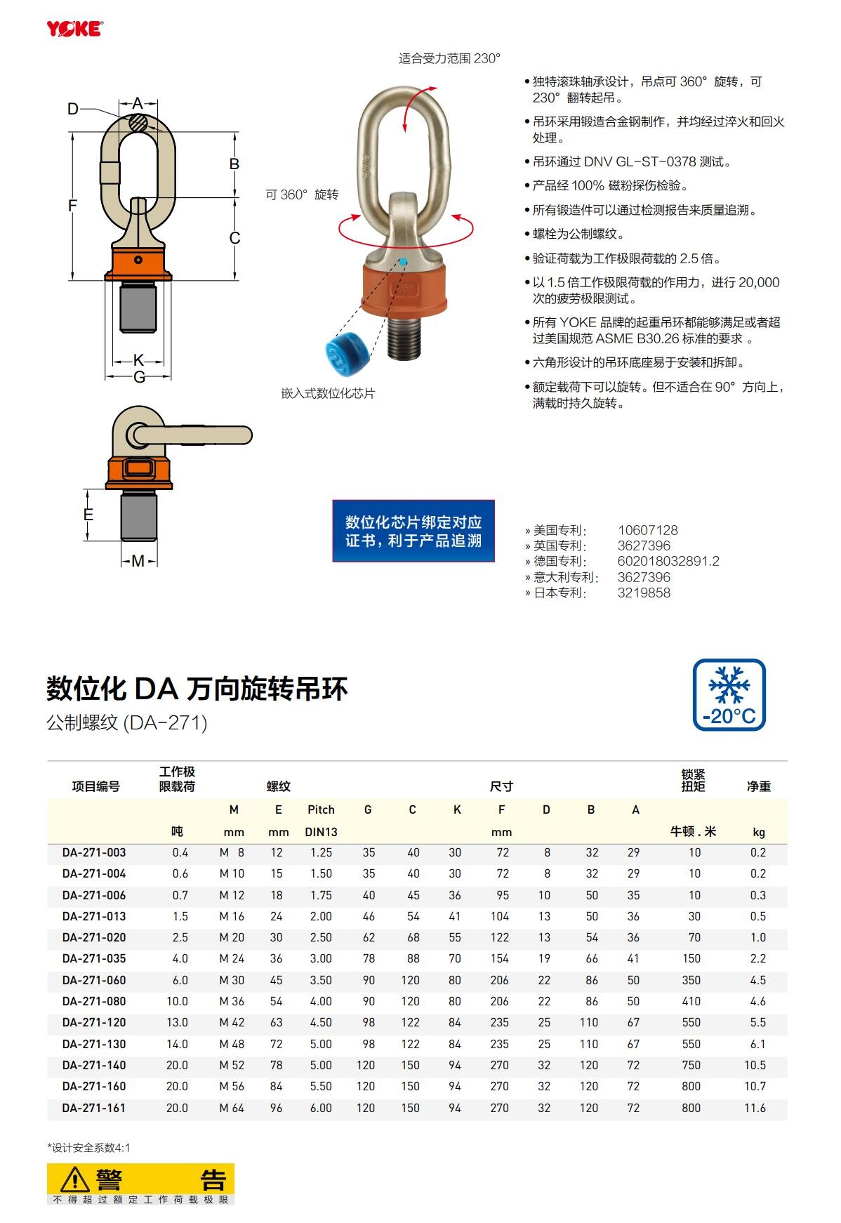 • 所有 YOKE 品牌的起重吊环都能够满足或者超过美国规范 ASME B30.26 标准的要求 。