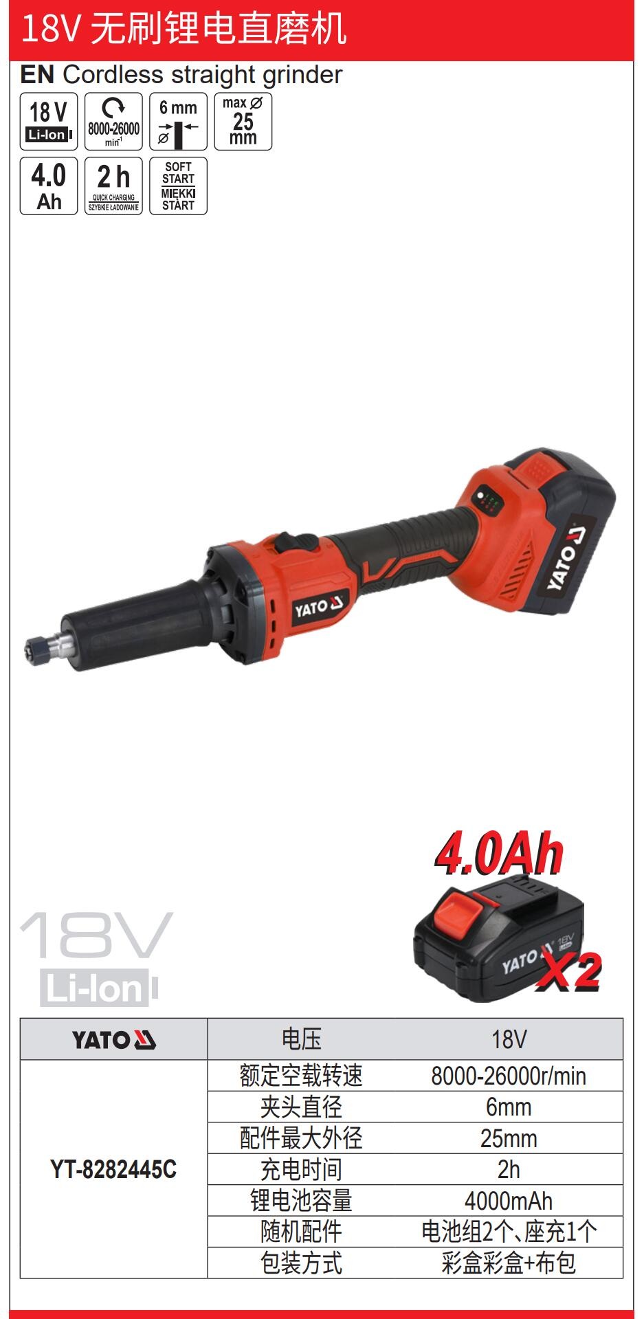 YATO 无刷锂电直磨机