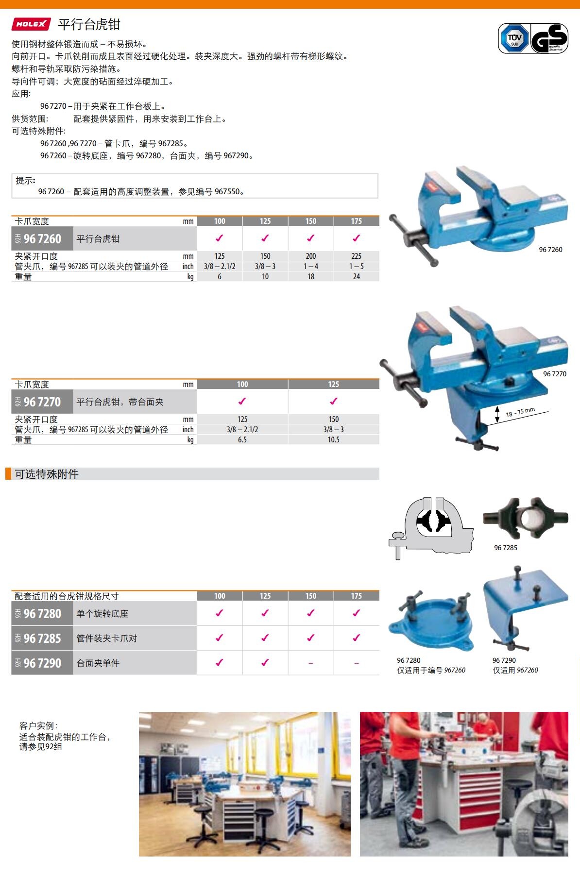 HOLEX 平行台虎钳使用钢材整体锻造而成 − 不易损坏。