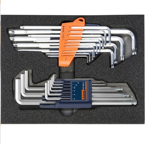 其余 3 个抽屉可单独配置。通用工具套装与双色 PE 硬质泡沫刻模完美契合,因此所有工具都可以在工具车中找到预定位置。