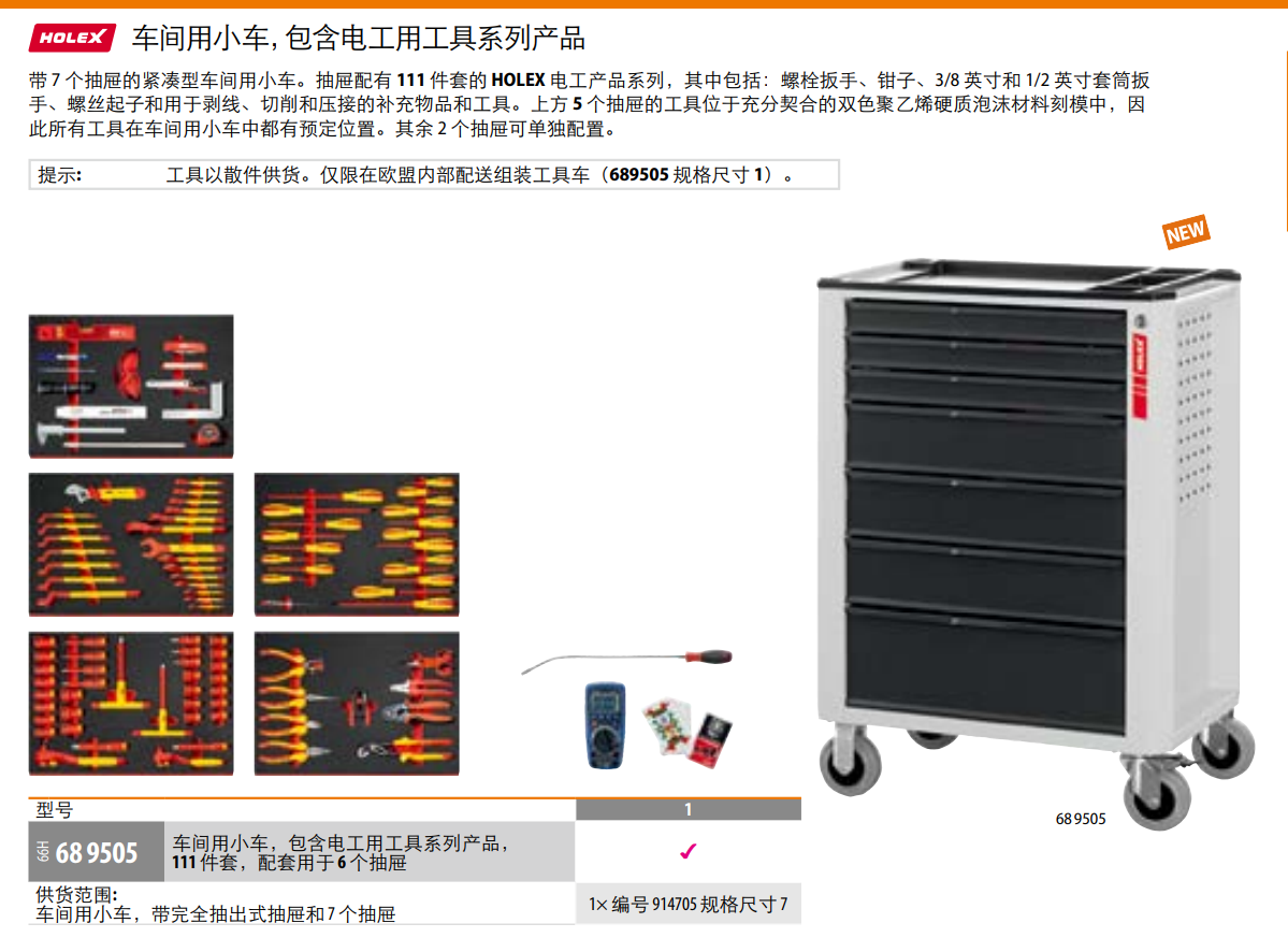 HOLEX 7抽车间工具车,包含电工用工具系列产品