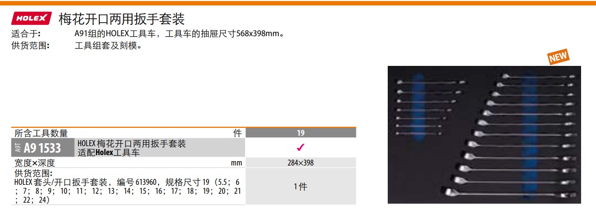 适合于: A91组的HOLEX工具车,工具车的抽屉尺寸568x398mm。