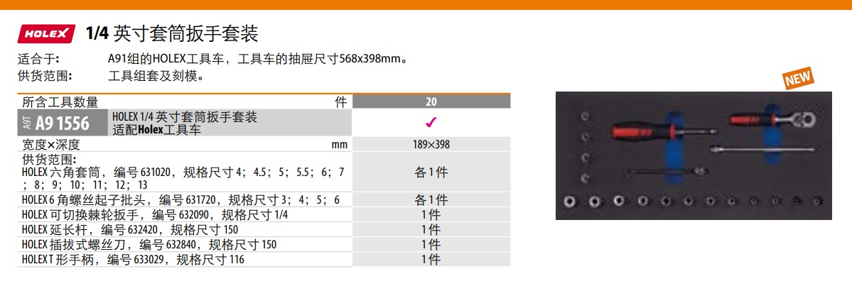 适合于: A91组的HOLEX工具车,工具车的抽屉尺寸568x398mm。