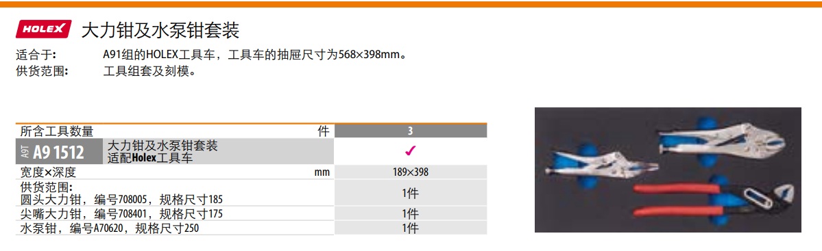 适合于: A91组的HOLEX工具车,工具车的抽屉尺寸为568×398mm。