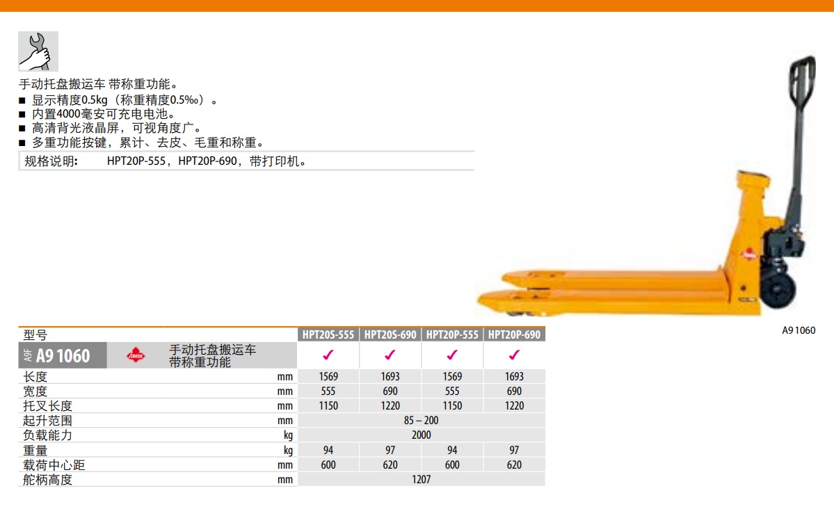 手动托盘搬运车 带称重功能。