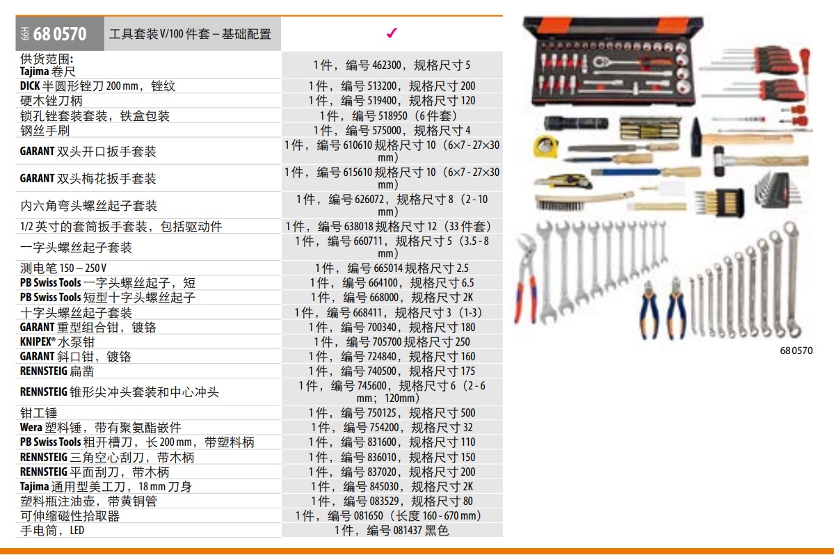 应用: 在移动式工具柜,工作台,抽屉柜等内的常用工具套装。