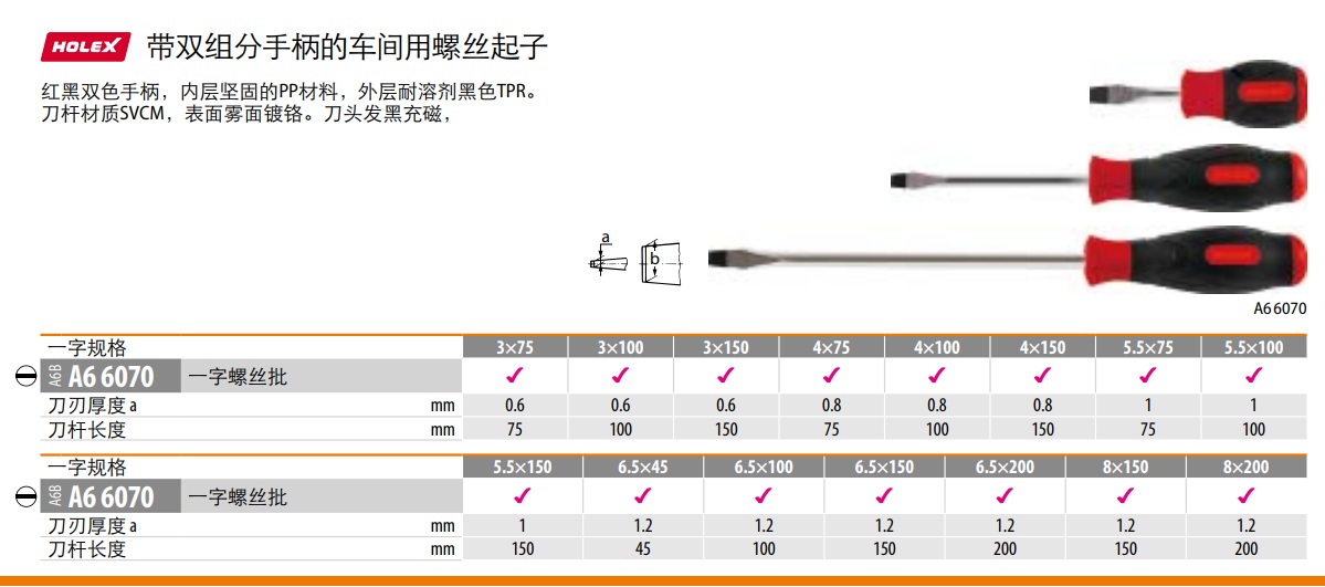 HOLEX 带双组分手柄的车间用一字螺丝刀