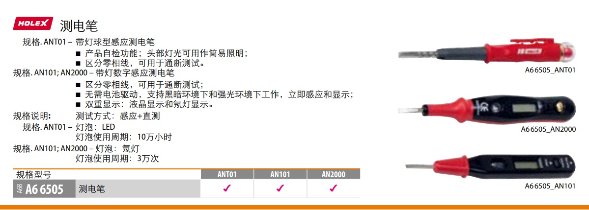 规格. AN101; AN2000 – 带灯数字感应测电笔