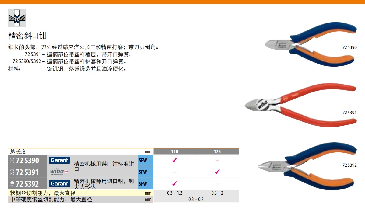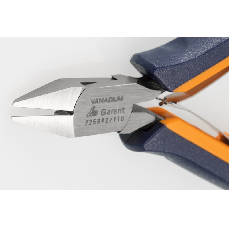 精密斜口钳细长的头部,刀刃经过感应淬火加工和精密打磨;带刀刃倒角。