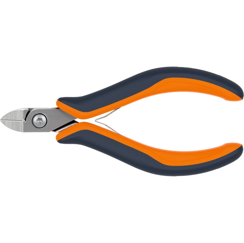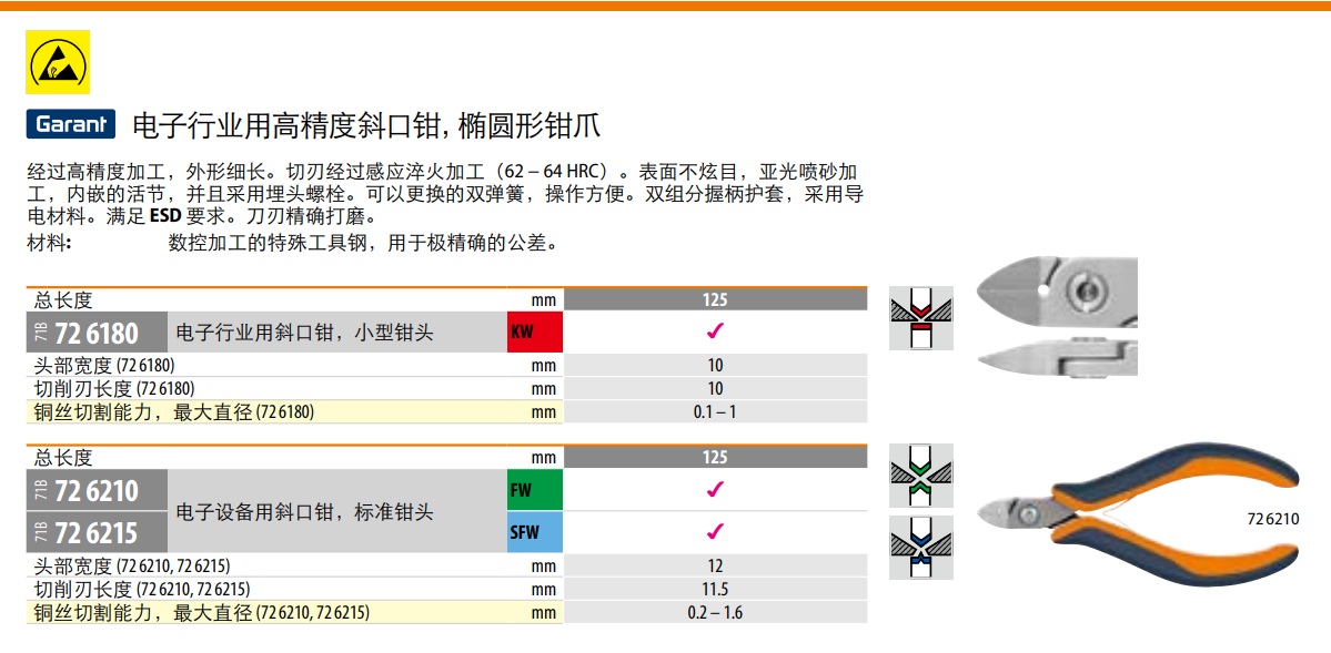 经过高精度加工,外形细长。切刃经过感应淬火加工(62 − 64 HRC)。刀刃精确打磨。表面不炫目,亚光喷砂加工,内嵌的活节,并且采用埋头螺栓。可以更换的双弹簧,操作方便。双组分握柄护套,采用导电材料。满足 ESD 要求。