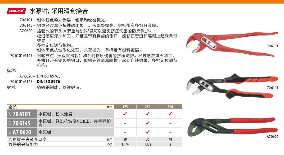 HOLEX 水泵钳,采用滑套接合