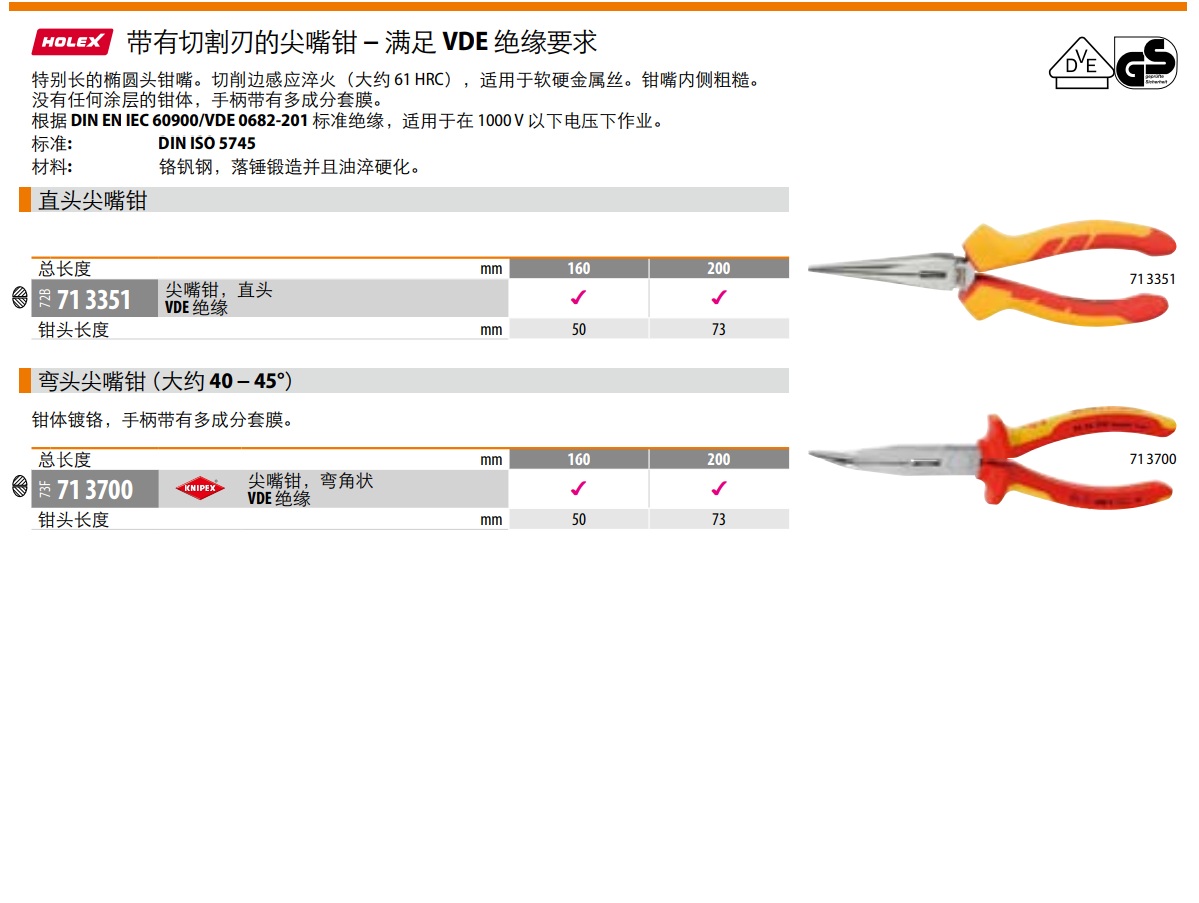 根据 DIN EN IEC 60900/VDE 0682-201 标准绝缘,适用于在 1000 V 以下电压下作业。