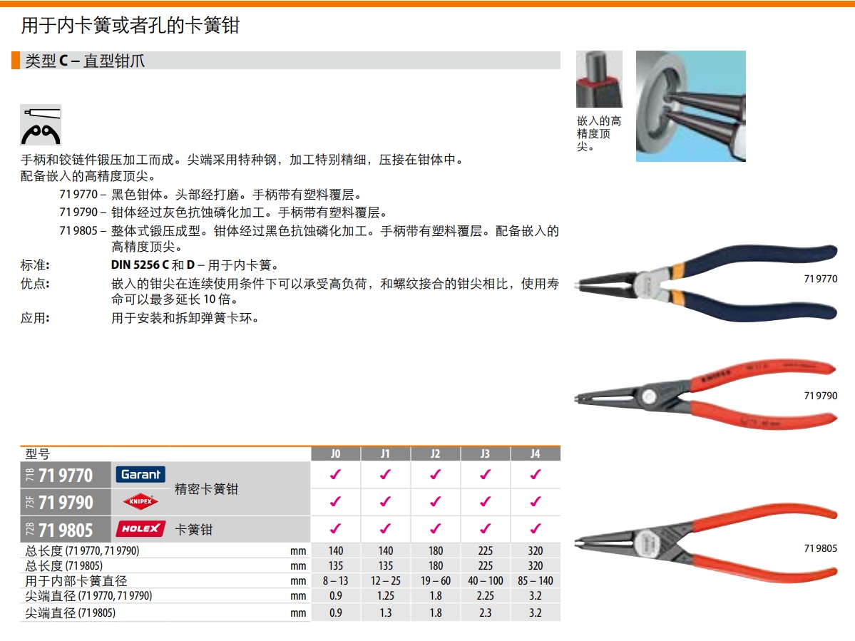 HOLEX 直型内卡簧钳 φ 8-140mm