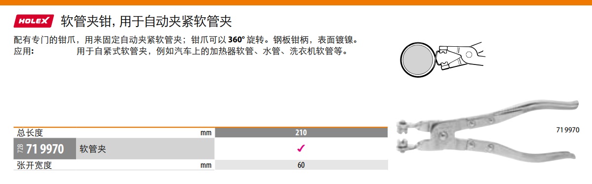 HOLEX 软管夹钳,用于自动夹紧软管夹