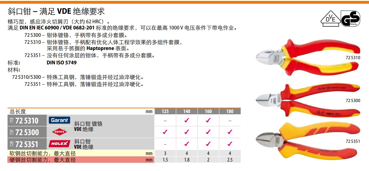 满足 DIN EN IEC 60900 / VDE 0682-201 标准的绝缘要求,可以在最高 1000 V 电压条件下带电作业。
