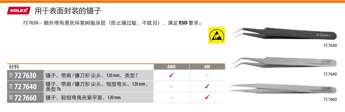 72 7630 – 额外带有黑色环氧树脂涂层(防止镍过敏,不眩目),满足 ESD 要求。
