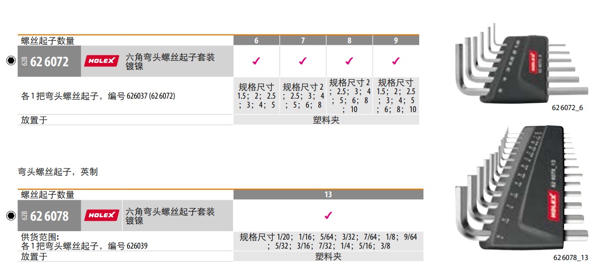 HOLEX 平头内六角扳手套装