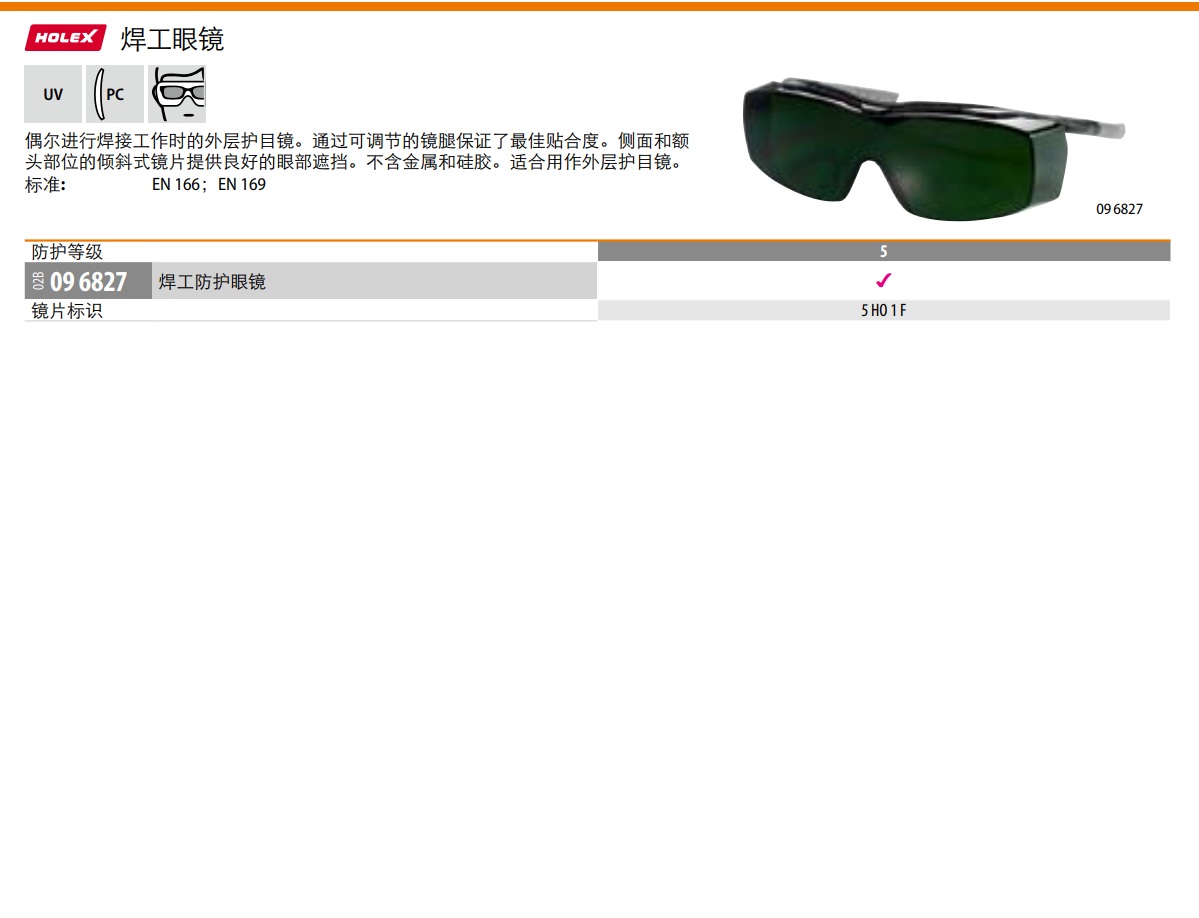 偶尔进行焊接工作时的外层护目镜。通过可调节的镜腿保证了最佳贴合度。侧面和额头部位的倾斜式镜片提供良好的眼部遮挡。不含金属和硅胶。适合用作外层护目镜。