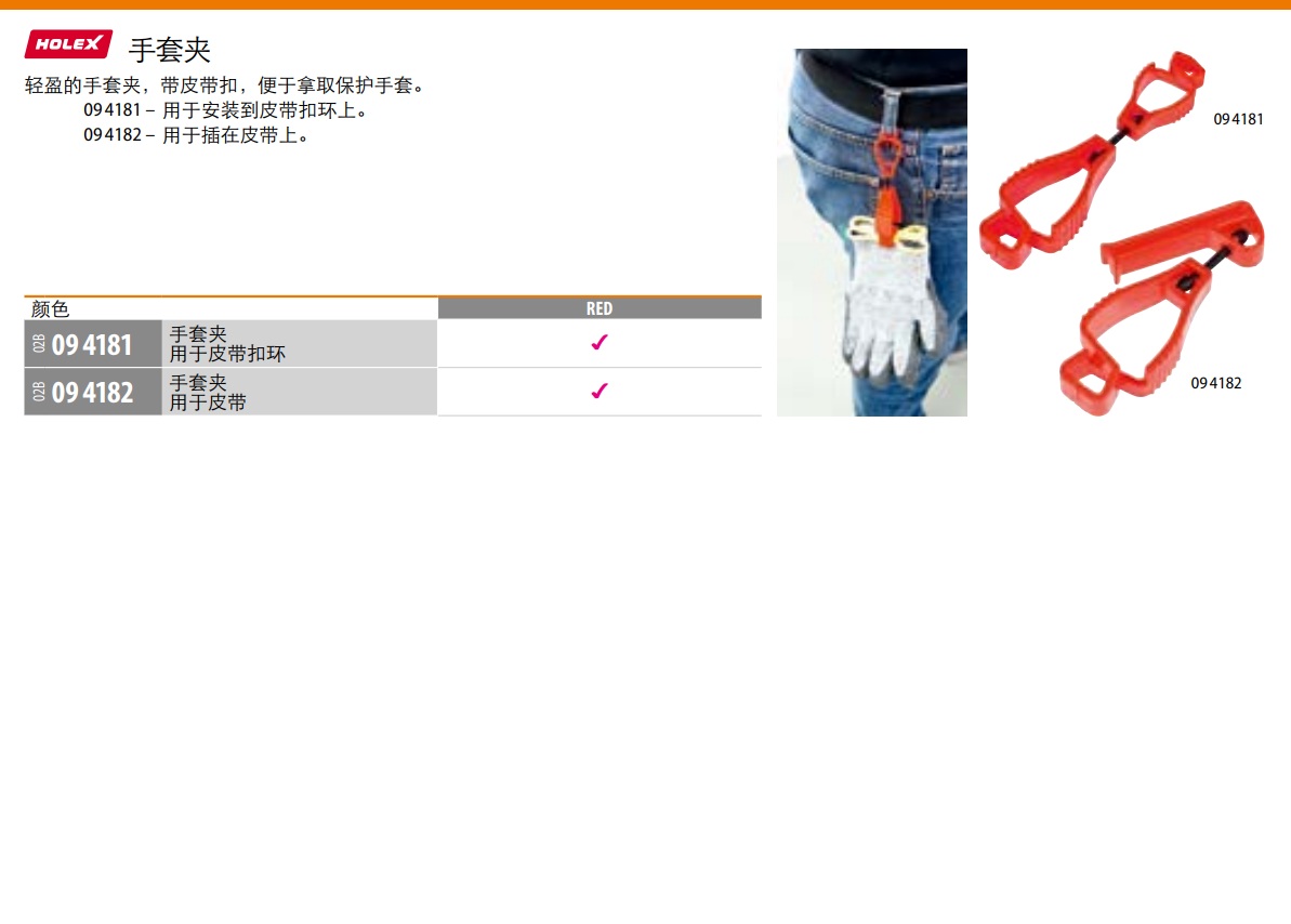 轻盈的手套夹,带皮带扣,便于拿取保护手套。