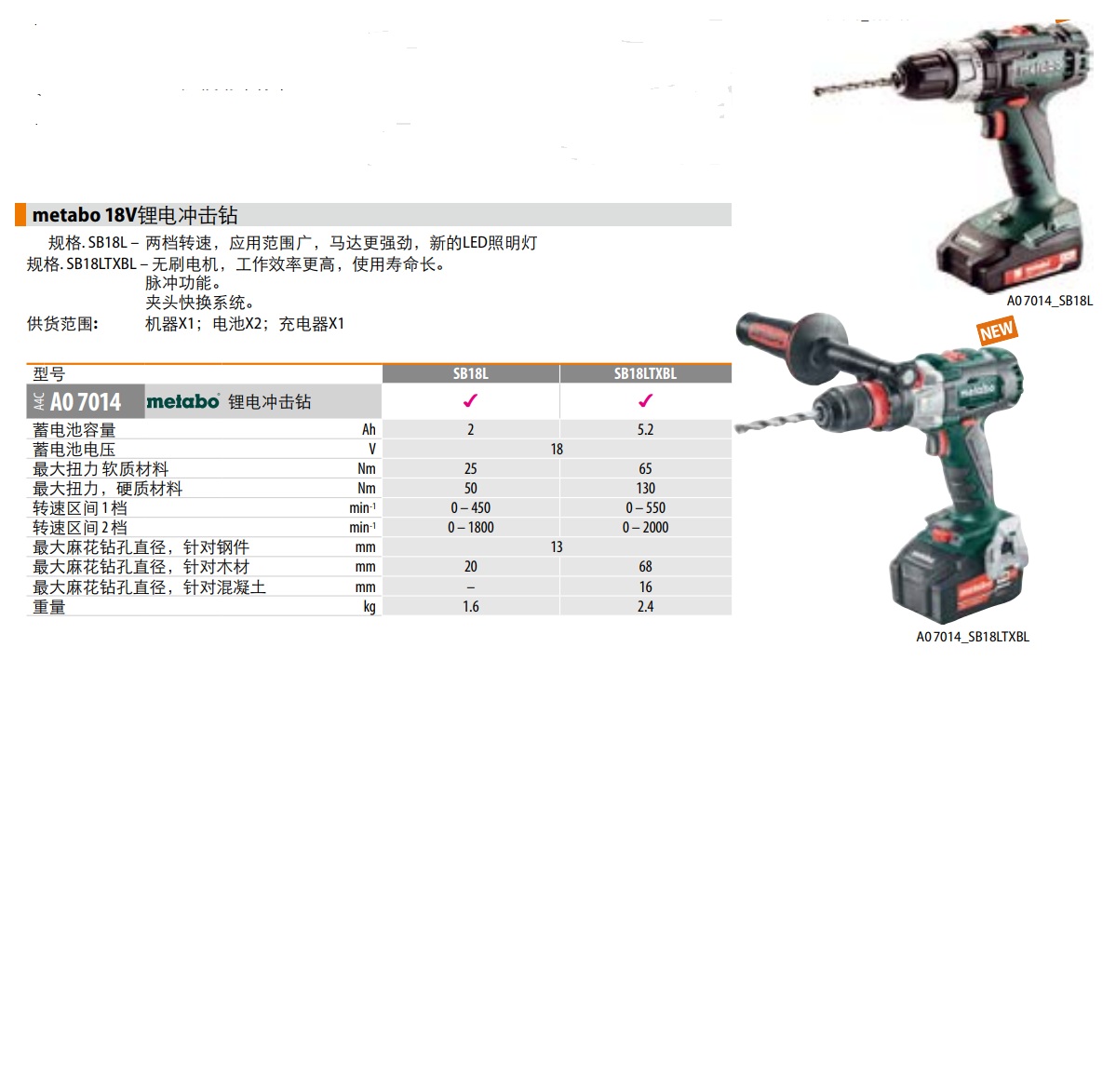 规格. SB18LTXBL – 无刷电机,工作效率更高,使用寿命长。