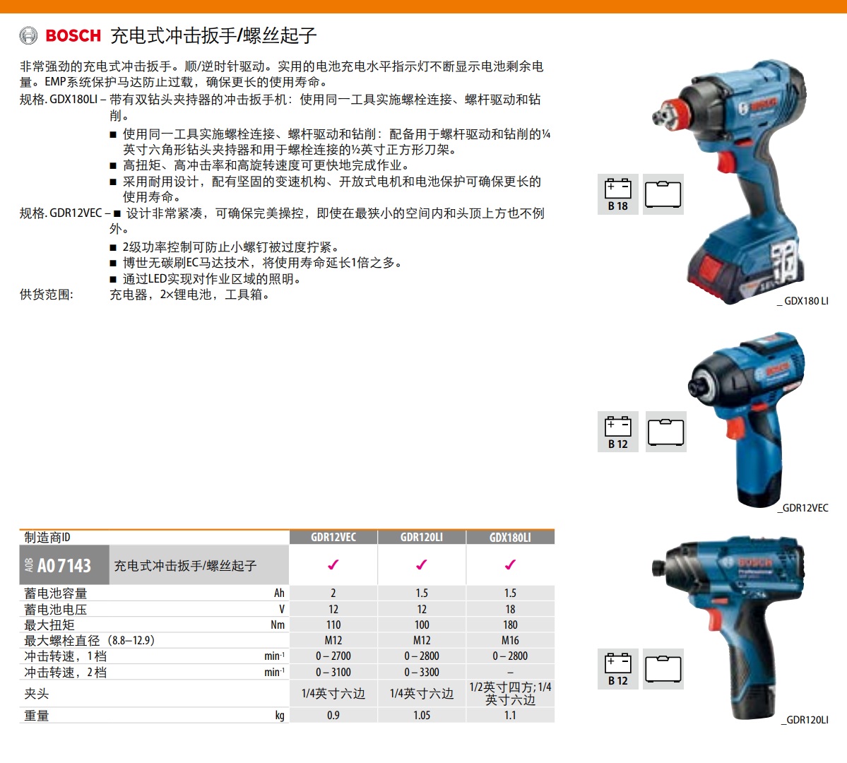 非常强劲的充电式冲击扳手。顺/逆时针驱动。