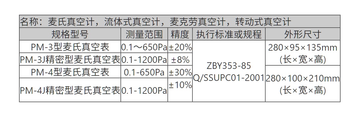麦氏真空表又名麦克劳真空计(也叫转动式压缩真空计),可以通过本身的参数,直接算得压强值,所以它除了进行压强测量外,还可以作为“绝对真空计”用来校验一些相对真空计,