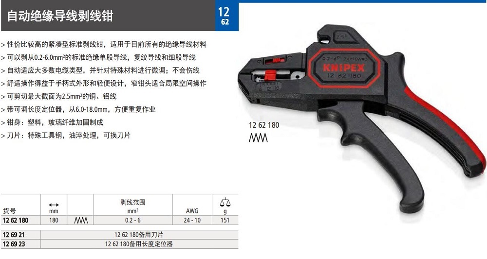 Knipex 自动绝缘导线剥线钳 0.2-6.0mm²