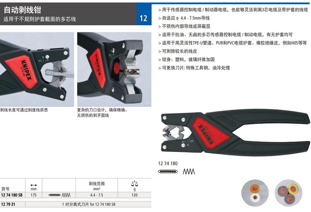 > 用于传感器控制电缆 / 制动器电缆,也能够灵活剥离3芯电缆及带护套的线缆