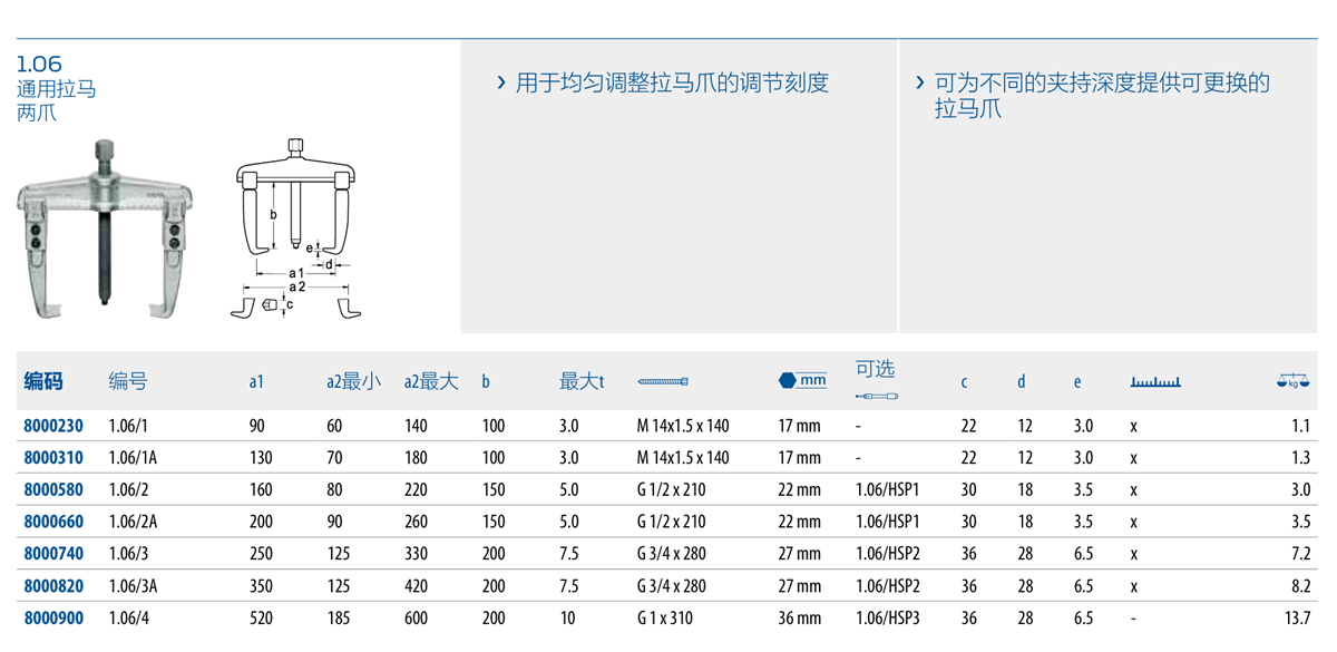 › 可为不同的夹持深度提供可更换的拉马爪