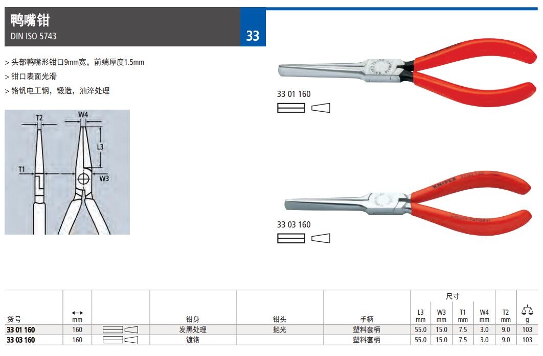 > 头部鸭嘴形钳口9mm宽,前端厚度1.5mm