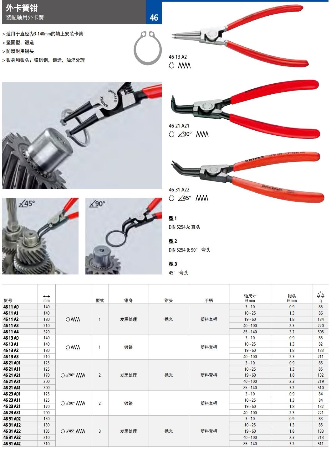 > 适用于直径为3-140mm的轴上安装卡簧