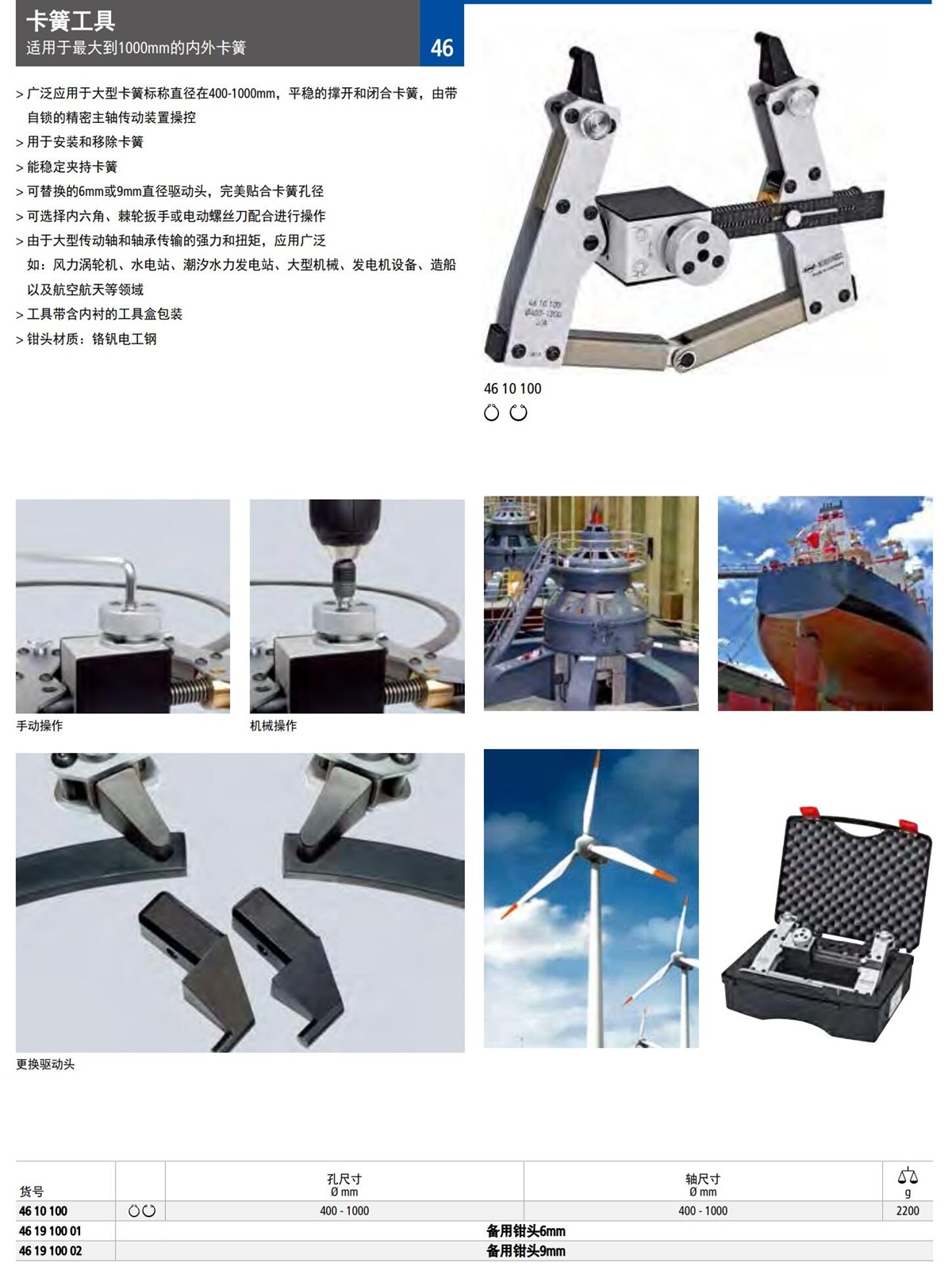 > 广泛应用于大型卡簧标称直径在400-1000mm,平稳的撑开和闭合卡簧,由带自锁的精密主轴传动装置操控